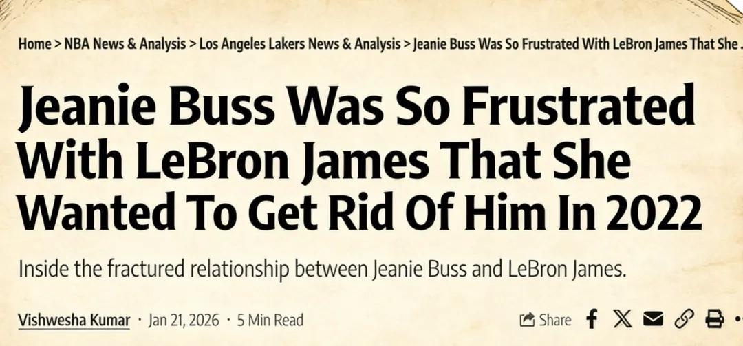 就在媒体、球迷纷纷解读,这番言论是否会引发球队更衣室动荡的时候,ESPN记者Baxter Holmes又撰文爆料,球队小老板珍妮·巴斯已经对詹姆斯不满许久,双方关系很差,巴斯甚至考虑过交易詹姆斯。